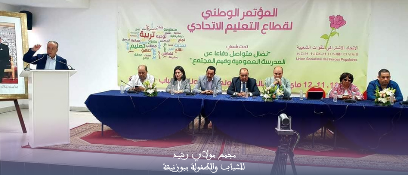 L’Union socialiste des forces populaires (USFP) a organisé au Complexe Moulay Rachid de la Jeunesse et de l’Enfance de Bouznika, du 10 Au 12 mai 2024, le congrès national des jeunes hommes et femmes de l’enseignement, sous le thème « Lutte en continu pour défendre l’école publique et les valeurs de la société »
