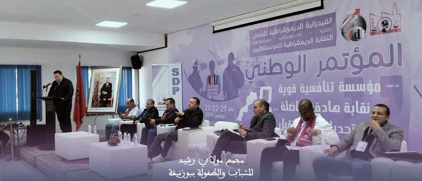 Le Syndicat Démocratique des Phosphatiers, relevant de la Fédération Démocratique du Travail, a organisé au Complexe Moulay Rachid de la Jeunesse et de l’Enfance de Bouznika, sa huitième conférence nationale sous le slogan « Une institution compétitive forte et un syndicat militant …… pour gagner les défis de l’avenir », les 21, 22 et 23 novembre 2024.